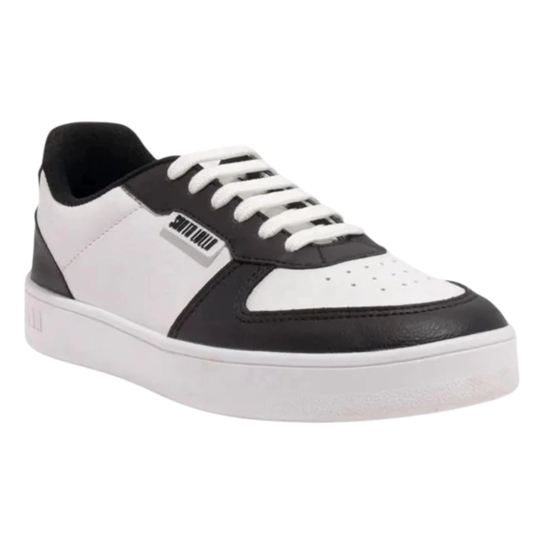 Confeccionado em material sintético texturizado tipo floater, o modelo traz solado branco robusto e detalhes contrastantes em preto, criando um visual versátil e atemporal. O interior é acolchoado e respirável, garantindo conforto ao longo do dia, enquanto o fechamento por cadarço ajusta perfeitamente ao pé.